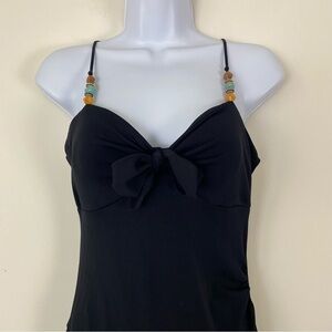EXPRESS Black 90s Y2K Style Beaded Spaghetti Strap Stretchy Knit Dress Cocktail. Layered asymmetrical hem. Excellent preowned condition.