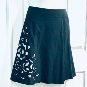 EXPRESS Black Cotton @Knee Embroidered Flowers Mesh Cut Outs A-Line Skirt~10