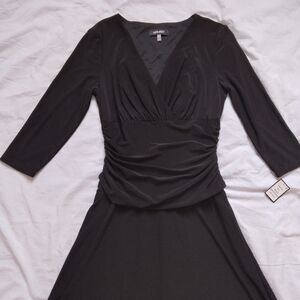 EXPRESS Black Dress Gathered Waist 3/4 Sleeve Fit And Flare Womens Size 6