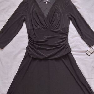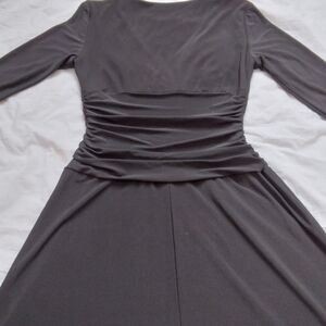 EXPRESS Black Dress Gathered Waist 3/4 Sleeve Fit And Flare Womens Size 6.