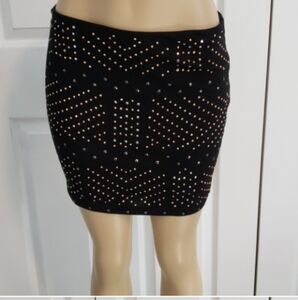EXPRESS Black Jersey Knit Stretch Studded Mini Skirt Size Small Bronze Silver