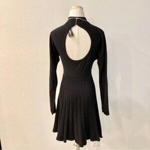 ⭐ EXPRESS Black Pleated Open-Back Sweater Dress Extra Small XS