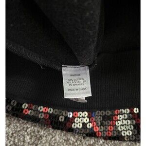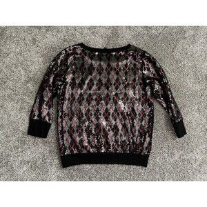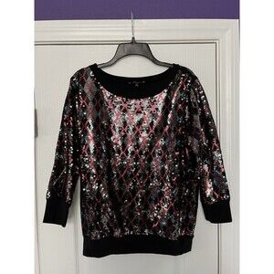 EXPRESS Black Red Silver Sequin Pullover Sweatshirt Top 3/4” Sleeve Size Large