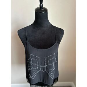 EXPRESS Black Silver Blue Beaded Fringe Y2K Style Cami Tank Top Size M
