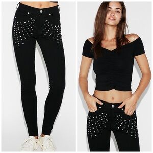 EXPRESS Black Studded High Waisted Skinny Jean Leggings