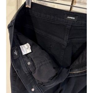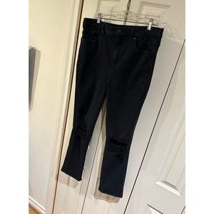 EXPRESS Black Super High Rise Slim Straight Ripped Knee Distressed Jeans 14