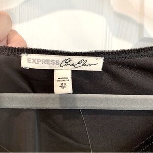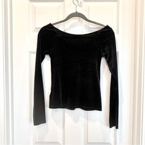 EXPRESS Black Velvet V-Neck Long-Sleeve Top