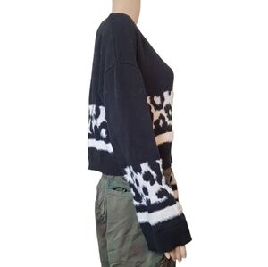 EXPRESS Black White Cheetah Print Cropped Sweater Women Size M