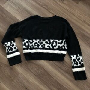 EXPRESS Black White Cheetah Print Cropped Sweater Women Size XSmall/ Stretchy/ the white part of the sweater is Fury/ super cute!
