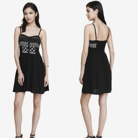 EXPRESS Black & White Printed Cami Sundress Dress