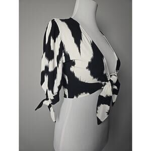 EXPRESS Black & White Tie-Front Cropped Jersey Sweater Top Size XS NWT $49.95