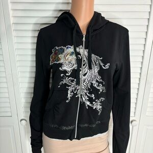 EXPRESS Black Zip Up Hooded Sweater Size Large
