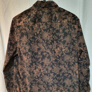 EXPRESS Black & Brown Floral Print button-down long sleeve shirt in Men's Small. The shirt has been worn, but has a lot of life left; and the colors are still sharp due to the quality fabric. Care tag has been removed, but feels (and washes) like 100% cotton.