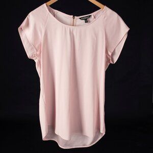 EXPRESS Blouse Silky Raglan Short Sleeve Round Neck Pastel Pink