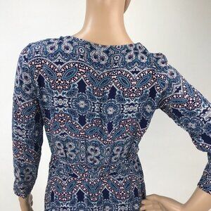 EXPRESS Boho Paisley Print Long Sleeve Belted V-Neck Mini A-line Dress 70s