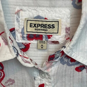 Express Boyfriend button down shirt, one front pocket, floral pattern, in excellent used condition.