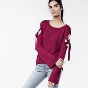 EXPRESS Burgundy Tie Sleeve Sweater Top Cold Shoulder Pink Purple Size Small New