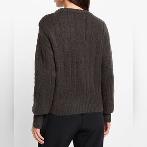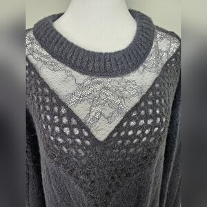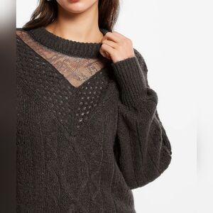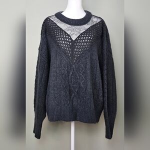 EXPRESS Cable Knit Crew Neck Lace Wool Blend Sweater Dark Gray XL