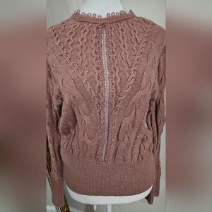 EXPRESS Cable Knit Lace Detail Bell Sleeve Sweater In Mauve Pink. Size Small NWT