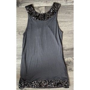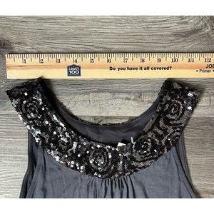 EXPRESS Charcoal Gray Sequin Trimmed Cotton Tunic Mini Dress Size S Side Pockets