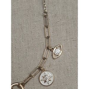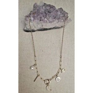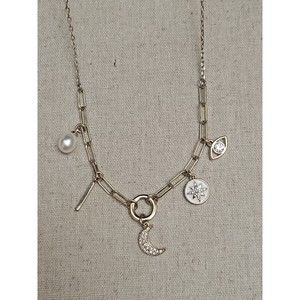EXPRESS gold tone Charm Pearl Crescent Moon Compass Rose Necklace