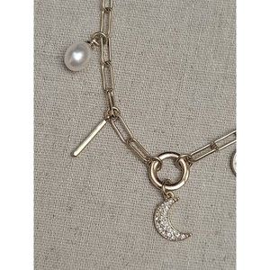 EXPRESS Charm Pearl Crescent Moon Compass Rose Yellow Gold Tone Necklace
