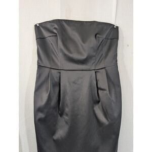 From Express Design Studio, this simply elegant dress is breathlessly cool! In black satin, it features a strapless bodice with rubber grippy strips hidden inside! Delineated waist, sheath style, ultra glam! Back zipper, Size 2, worn one time! Excellent! Superb EUC Condition! **ABSOLUTELY GUARANTEED CONDITION: EUC MINTY-EXCELLENT TO LIKE-NEW, by Lily @HauteClub!***