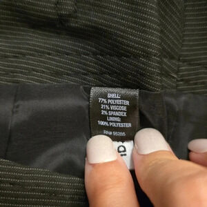 Is fully lined. Doesn't have any stretch. Has side zipper.
