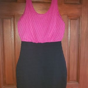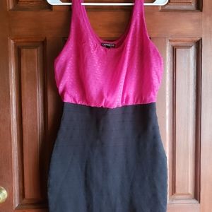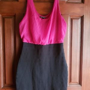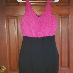 Express hot pink with glitter design and bottom back hip adjuster bodycon dress.