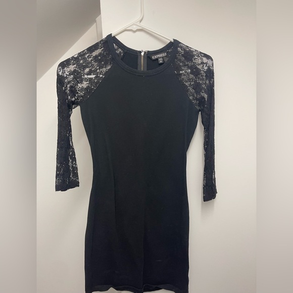 Black Express short dress size XS. Worn twice. Sleeves are lace with no holes. No stains, tears, or holes. Great for a night out to dinner and/or out dancing!!