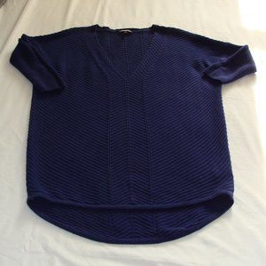 EXPRESS Dark Purple 3/4 Sleeve Hi-Low LADDER Knit V-Neck Sweater Sz XS