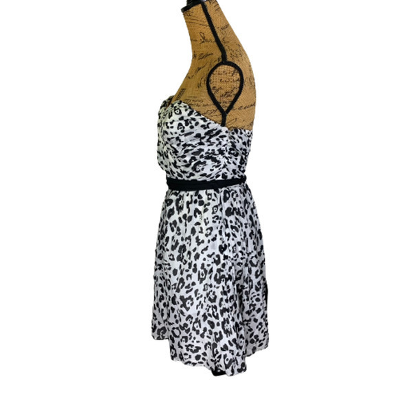EXPRESS Dress Mini 2024 Trend White & Black Leopard Print Strapless Dress NFR