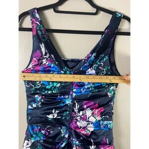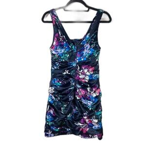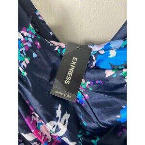 EXPRESS Dress Ruched Satin Navy Purple Floral Cocktail Dress 6