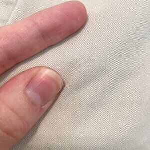 ◇ good used condition overall - slightly fuzzy/pilly; faint marks/spots on front of leg as shown (unsure what they are, haven't tried removing; other spots possible) (very wrinkled)