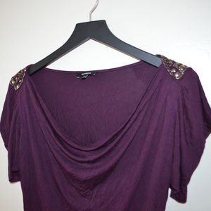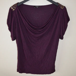 EXPRESS Eggplant Embellished Cowl Neck Top