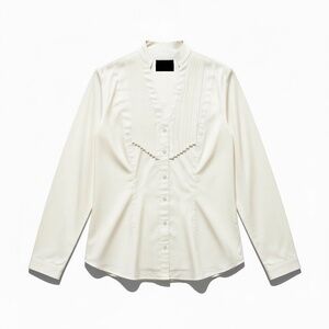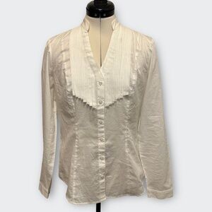 EXPRESS Essential White Cotton Pintuck Shirt M | Cottage Academia Boho Romantic