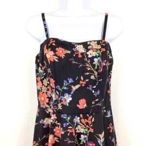 EXPRESS Fit & Flare Sleeveless Spaghetti Strap Dress Floral Hummingbird size 8