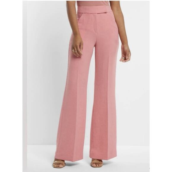 EXPRESS Flare Trouser Super High Rise Size 6R Salmon Pink pants 70’s Flare