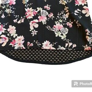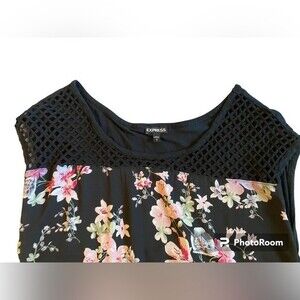 EXPRESS Floral Short Sleeve Blouse with Mesh Back
