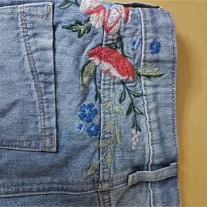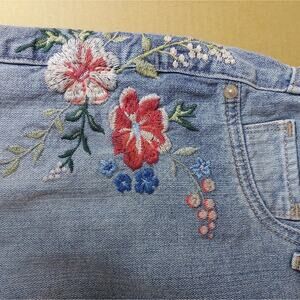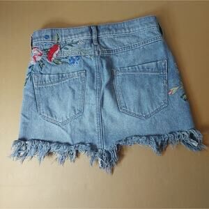 EXPRESS Floral Embroidered Raw Hem Denim Mini Skirt Summer Boho Floral Festival