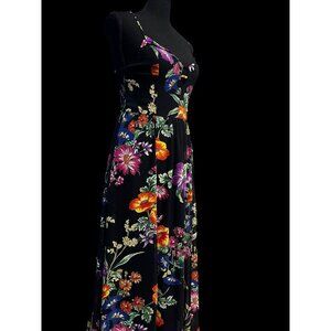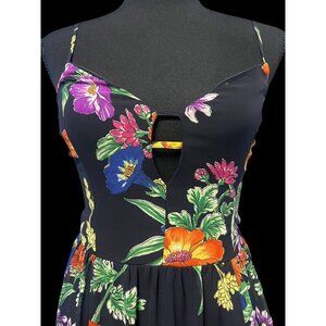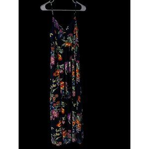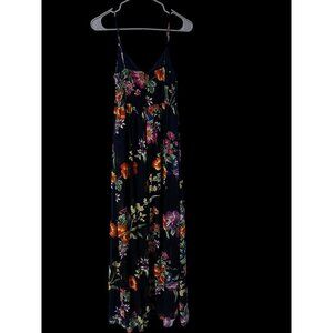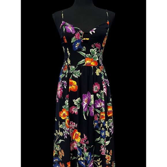 EXPRESS Floral Maxi Dress WOMEN Black Multicolor XS Cutout Front Spaghetti Strap