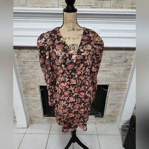 EXPRESS Floral Metallic Gold Puff Sleeve Shoulder Sheath Wrap Dress Size large
