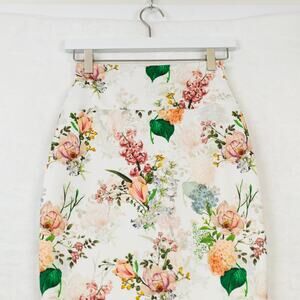 EXPRESS Floral Pencil Midi Skirt Bodycon Scuba Jersey Office Siren Feminine XS