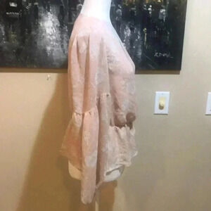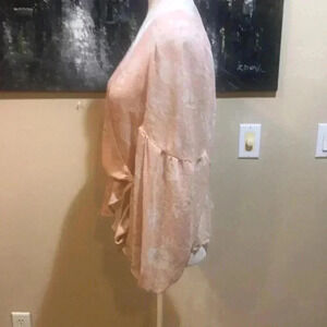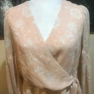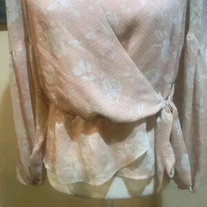 EXPRESS Floral Print Orange and Cream Wrap Blouse V-Neck-Size M