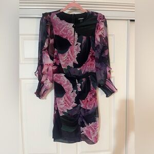 EXPRESS Floral Ruffle Ruched Mini Sheath Dress