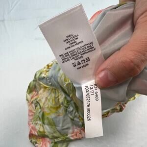 Features & Fabric Side zip and hook closure Asymmetrical hem; Lined Floral print; Ruffle detail
