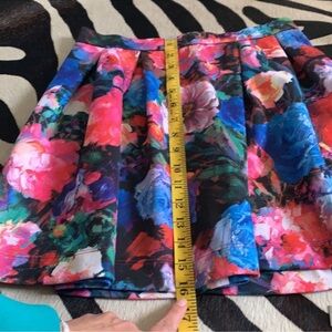 EXPRESS Floral pleated skater mini Skirt Sz S Pink Red Blue