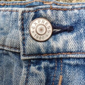 EXPRESS Frayed A-Line Denim Mini Jean Skirt EUC