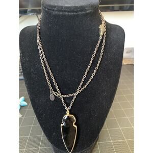 EXPRESS Gold Tone Cross Acrylic Arrowhead Gray Metal Chain Necklace 32”L