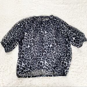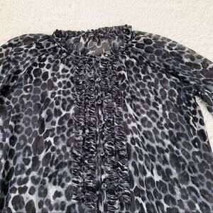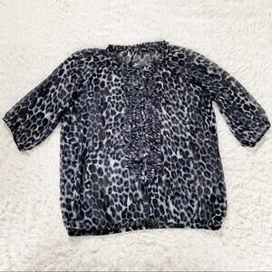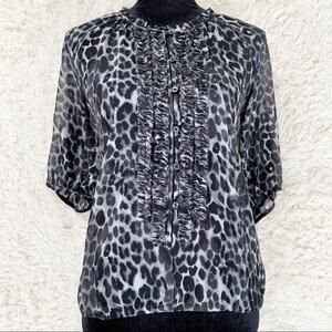 EXPRESS Gray Leopard Animal Print Ruffle 3/4 Sleeve Blouse size Small